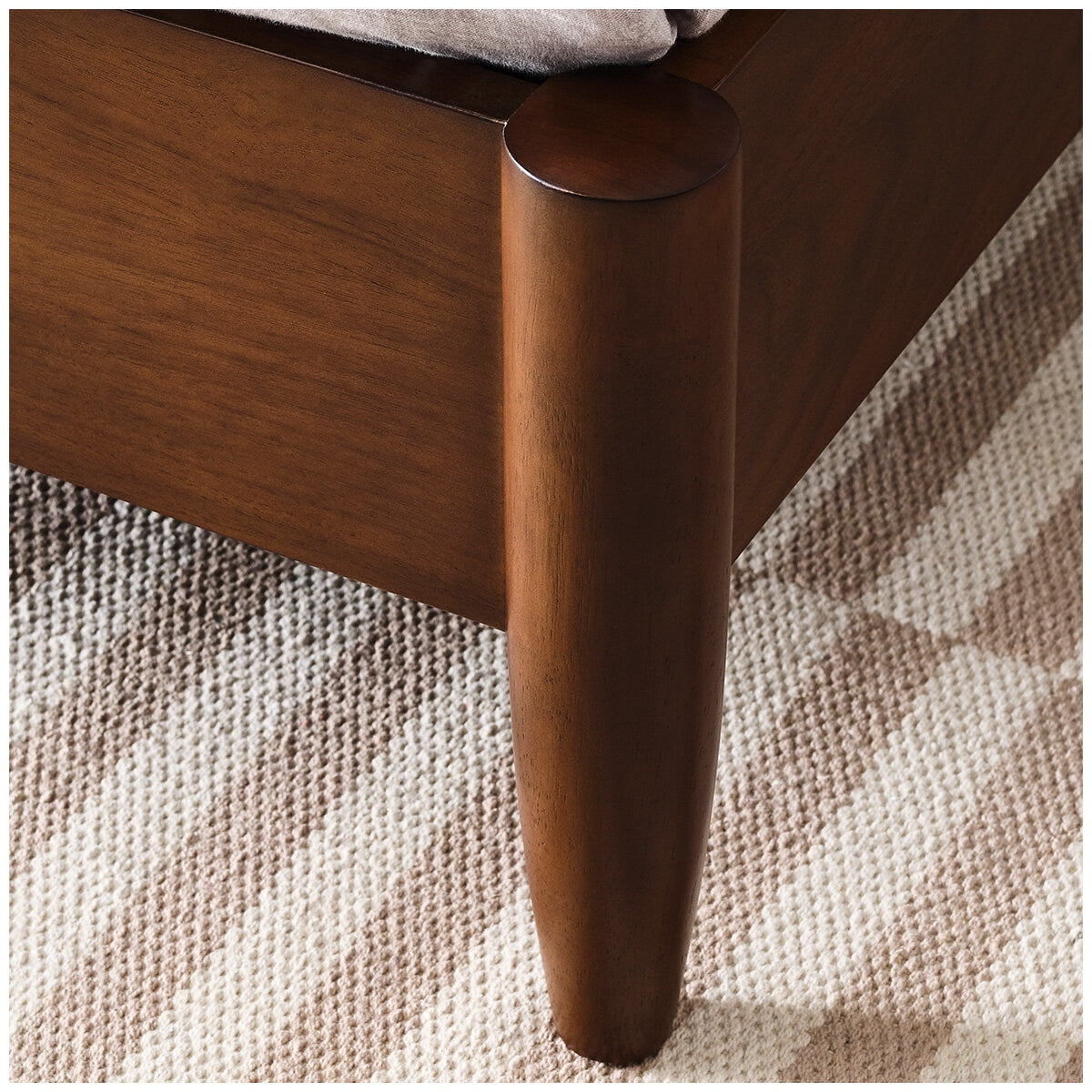 The smooth panel headboard, extended posts, and round tapering legs enhance the mid-century modern aesthetic, adding a touch of vintage charm to your bedroom. Crafted from hardwood solids and walnut veneers, this bed boasts a rich finish that complements both vibrant and neutral color schemes.