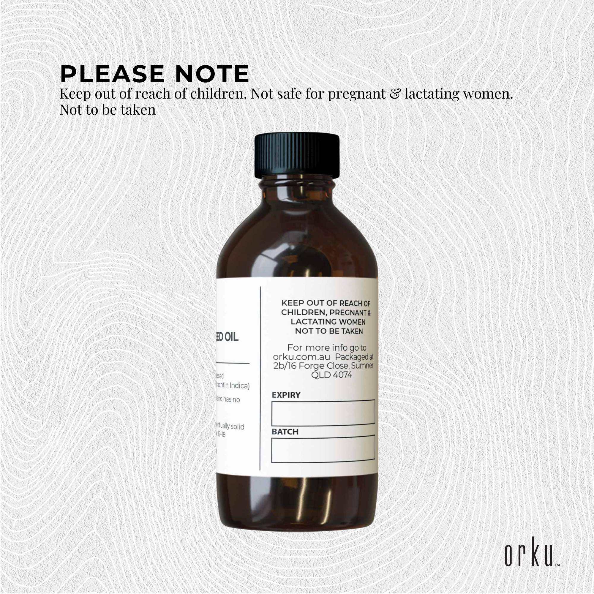 Orku 30ml Organic Neem Seed Oil is naturally rich in vitamin E and fatty acids, serving as a base for various skin and hair care products.