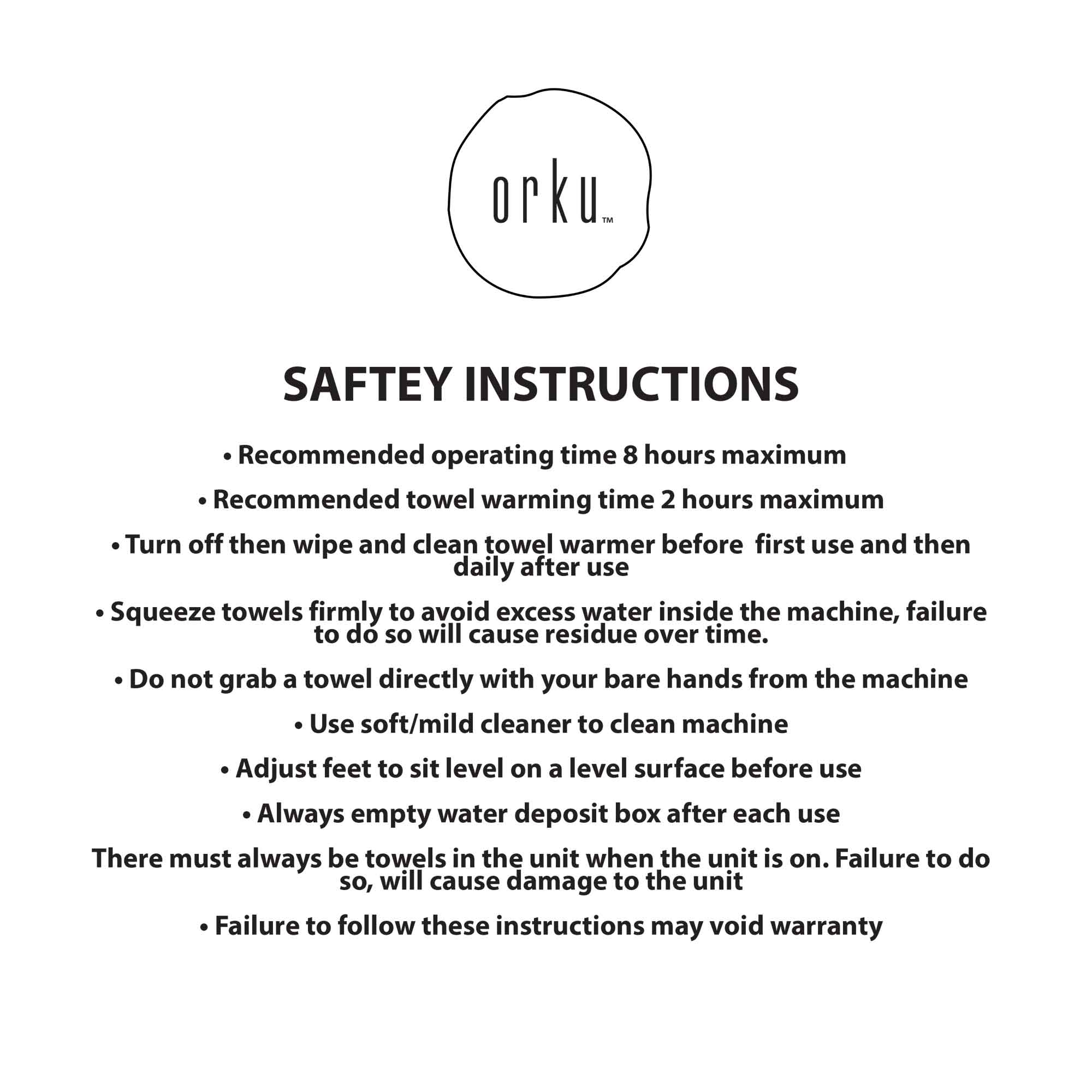 Always make sure that towels are actually in the warmer whilst it is switched on. No towels present will cause damage to the unit.