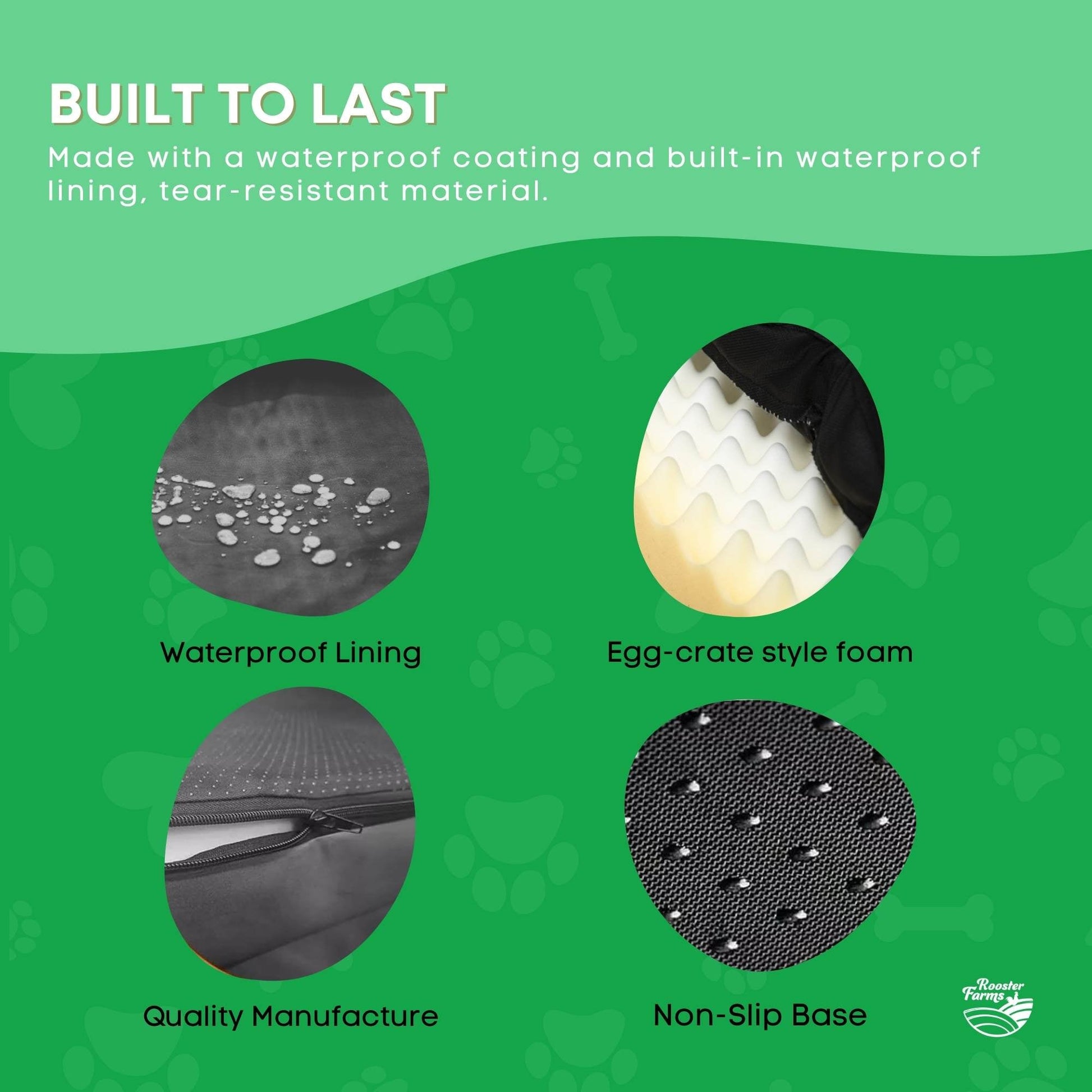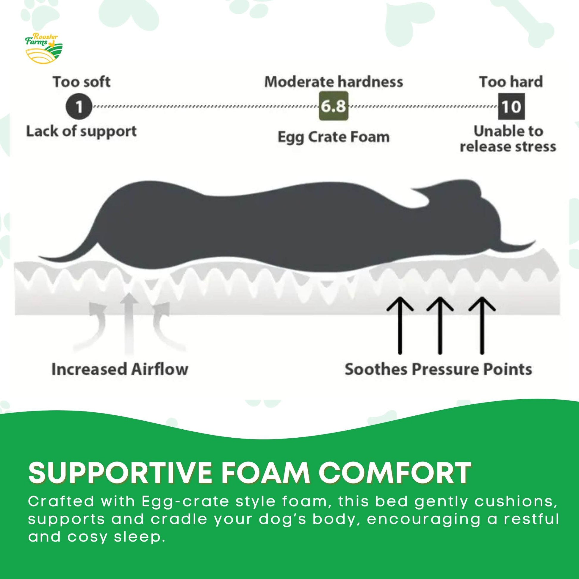Durable Waterproof Design: Constructed from robust Oxford cloth and featuring a waterproof coating along with an internal lining, this bed resists spills effortlessly, keeping your pet's sleeping area clean without the hassle of frequent washing. The included 3D egg crate-style foam offers enhanced support for better joint health.