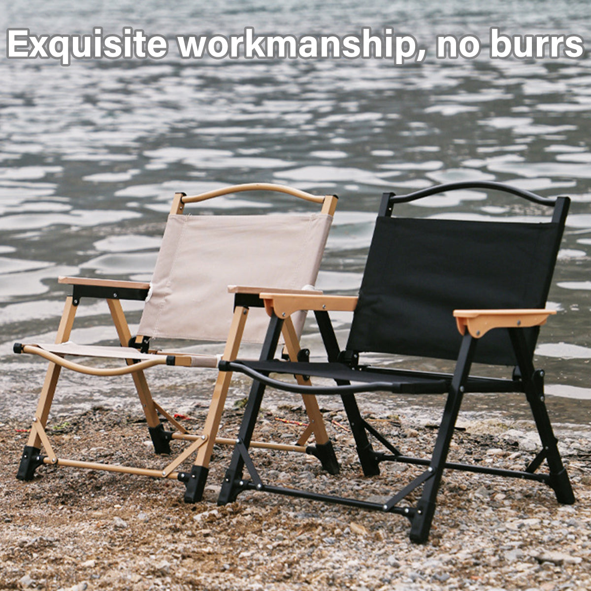 This foldable chair is designed for outdoor comfort and stability, featuring solid wood armrests and durable Oxford cloth seating. The reinforced triangular structure ensures reliable support while being portable for easy transport.