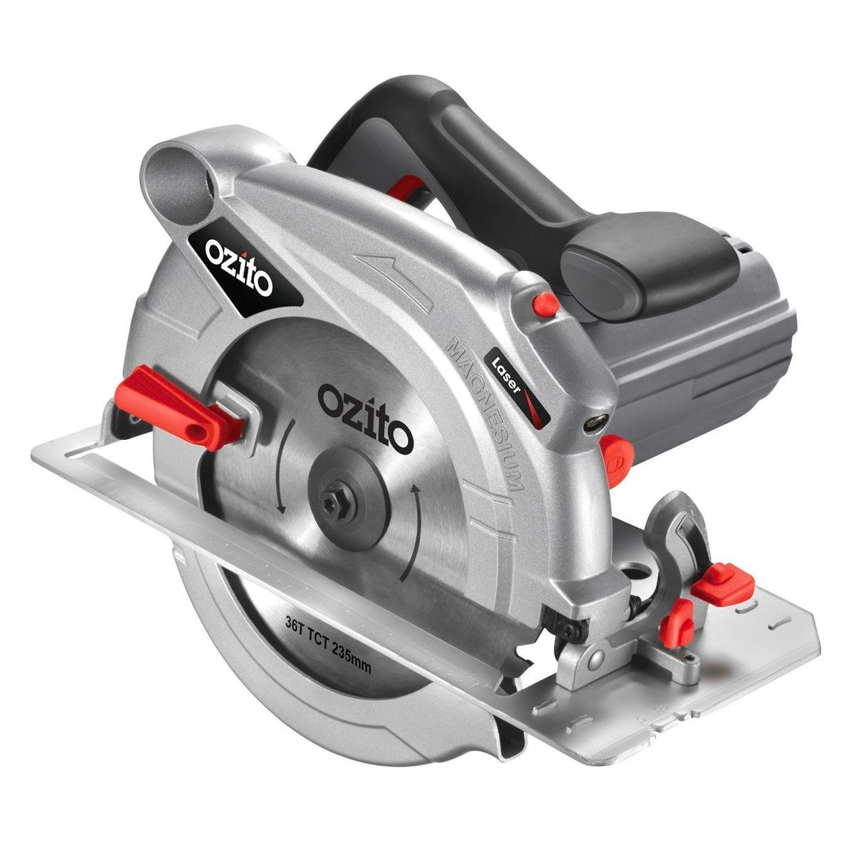 The Ozito Circular Saw 2000W 235mm Laser Guided Metal Plastic Smooth Cut is designed for efficient cutting tasks.