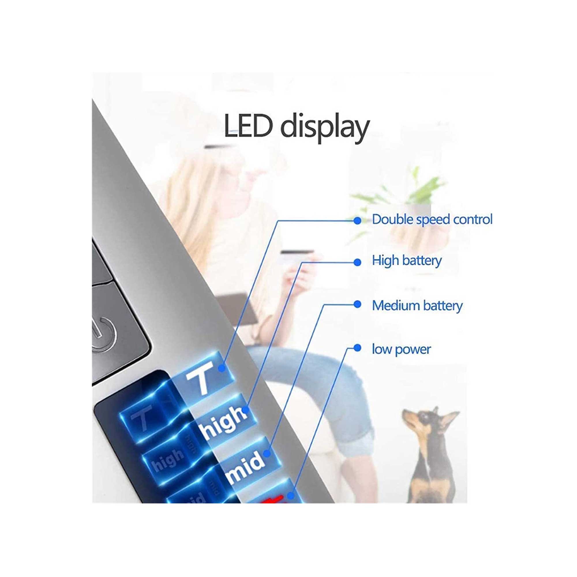 Our Professional Pet Nail Grinder is crafted with a long-life rechargeable Li-ion battery that powers through tasks for up to 8 hours, keeping your furry friend comfortable and stress-free. The LED screen displays vital information like speed settings and low battery warnings.