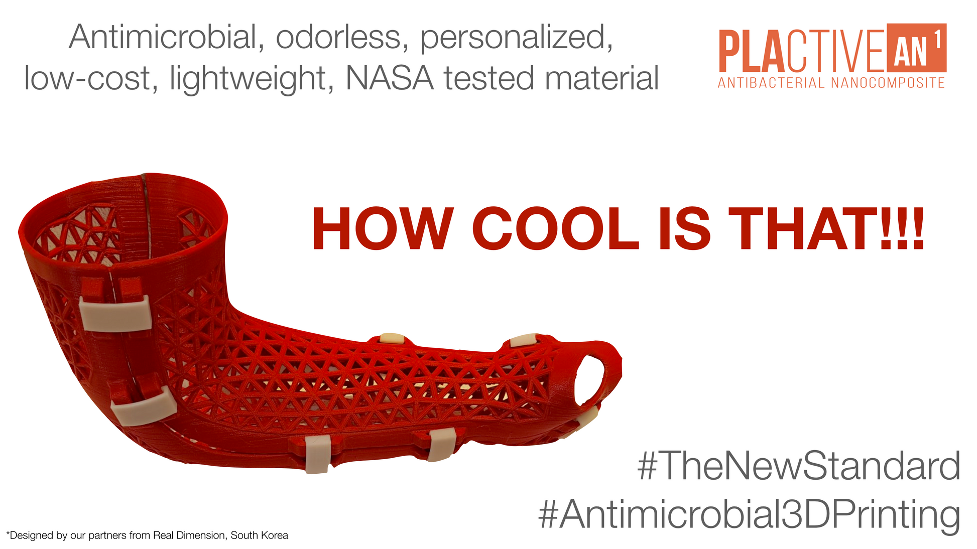 • PLActive has thermoforming characteristics that facilitate post-processing and final adjustments of the 3D printed application
