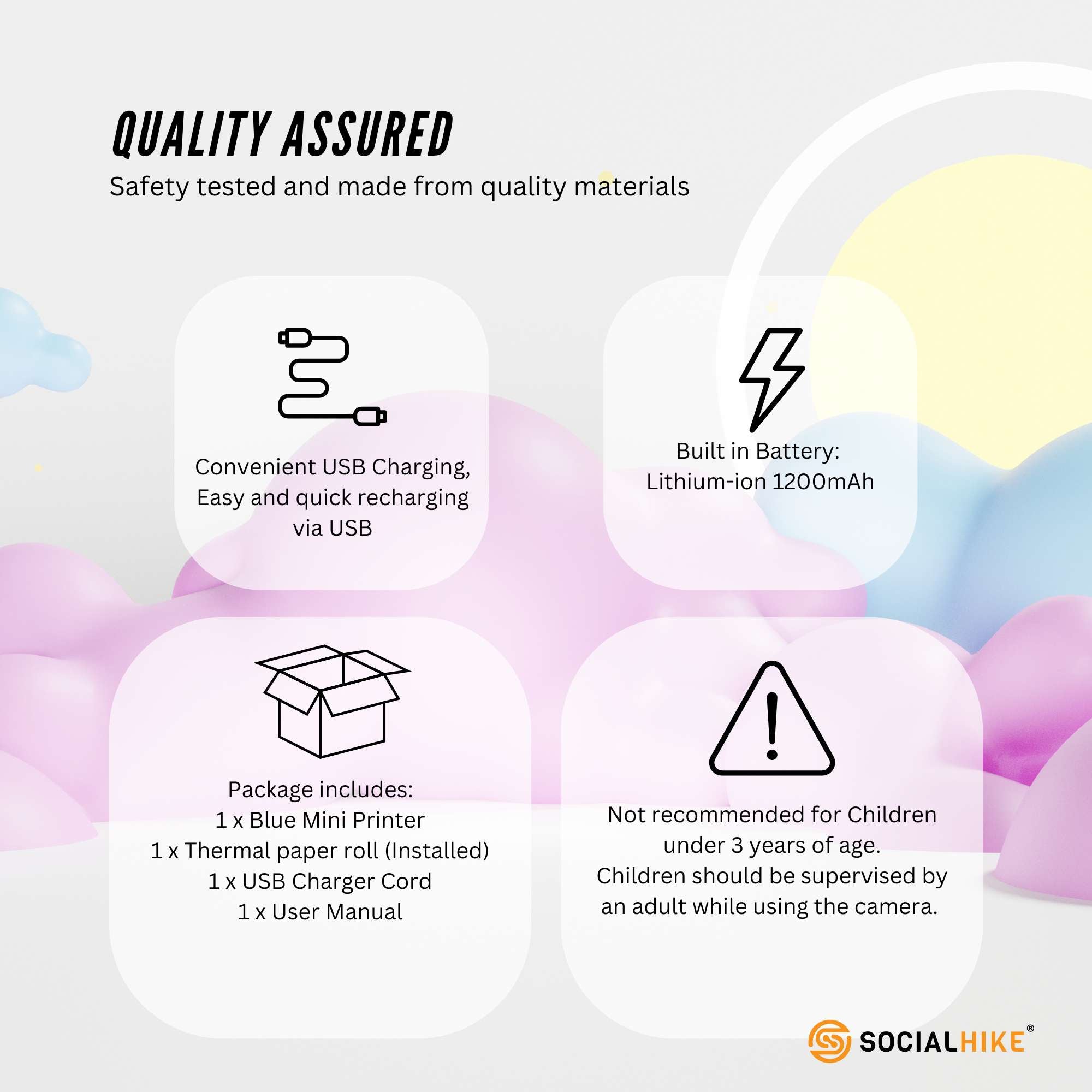 Take your printing needs wherever you go with our Social Hike Mini Portable Printer! Whether you're at home, in the office, or on an adventure, this compact and lightweight printer is designed to meet your on-the-go lifestyle. With easy Bluetooth connectivity, you can quickly pair your smartphone or tablet and start printing in seconds.