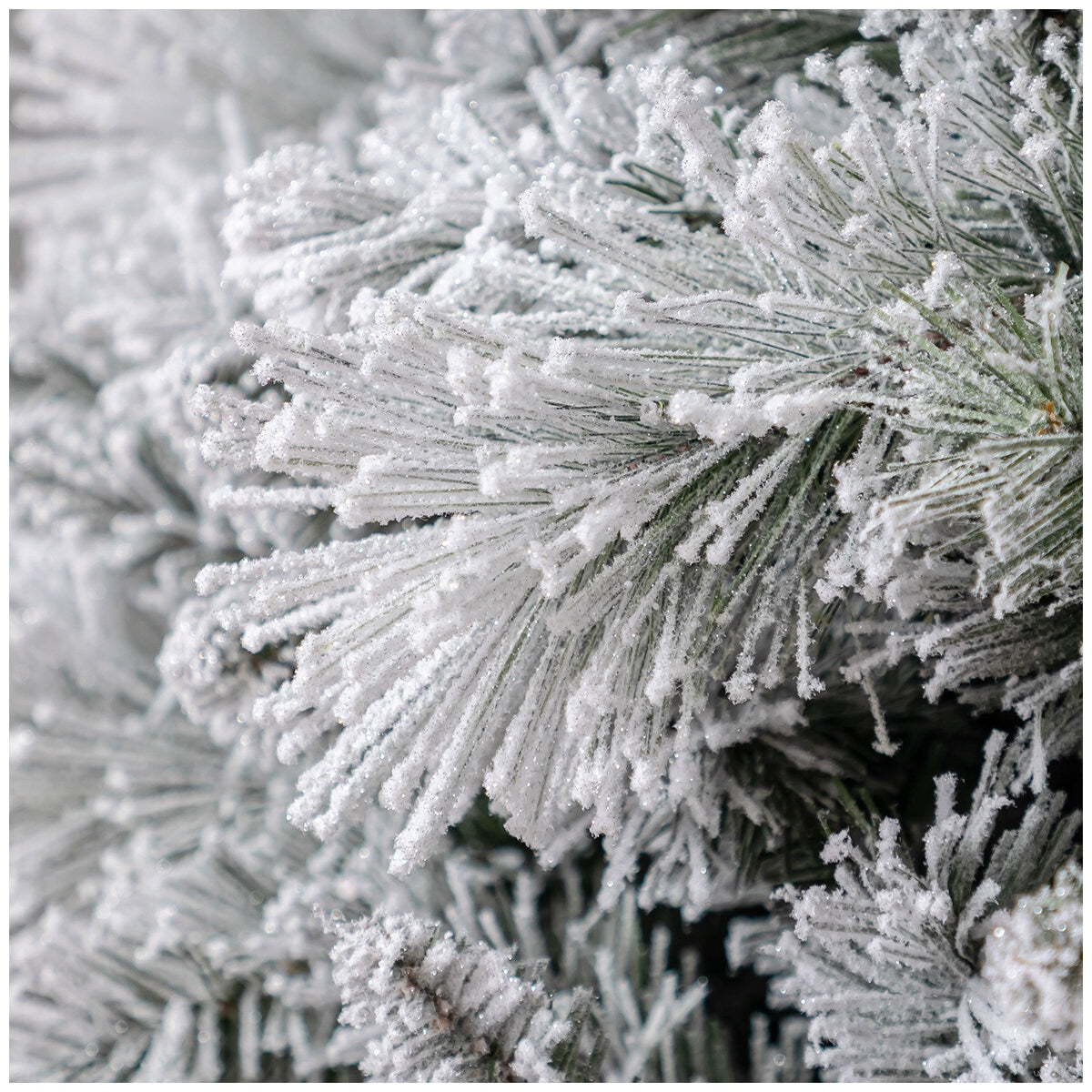 Enjoy the sparkling charm of this pre-lit, flocked Christmas tree throughout the holiday season. Its easy setup and stunning light display make it a perfect centerpiece for your festive home décor.
