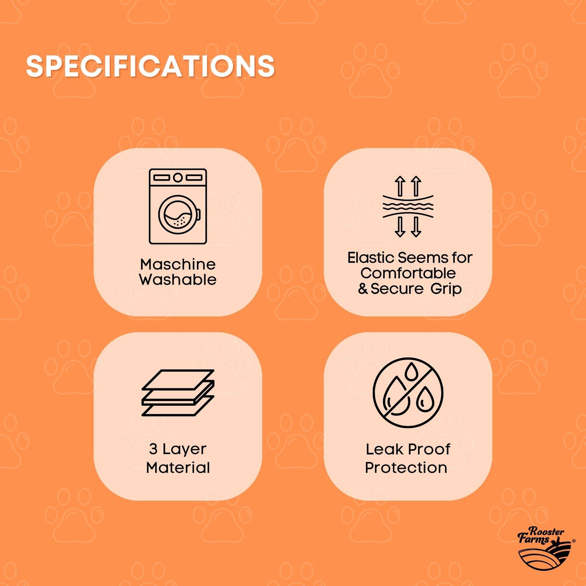 Rooster Farms Male Dog Diapers 3-Pk Washable Reusable Nappies Hook + Loop Fit will keep your dog comfortable and your home clean! Designed with a leak-proof three-layer core and secure elastic openings, these reusable nappies are perfect for incontinence, excitable urination, or recovery. Machine washable and eco-friendly for everyday use.