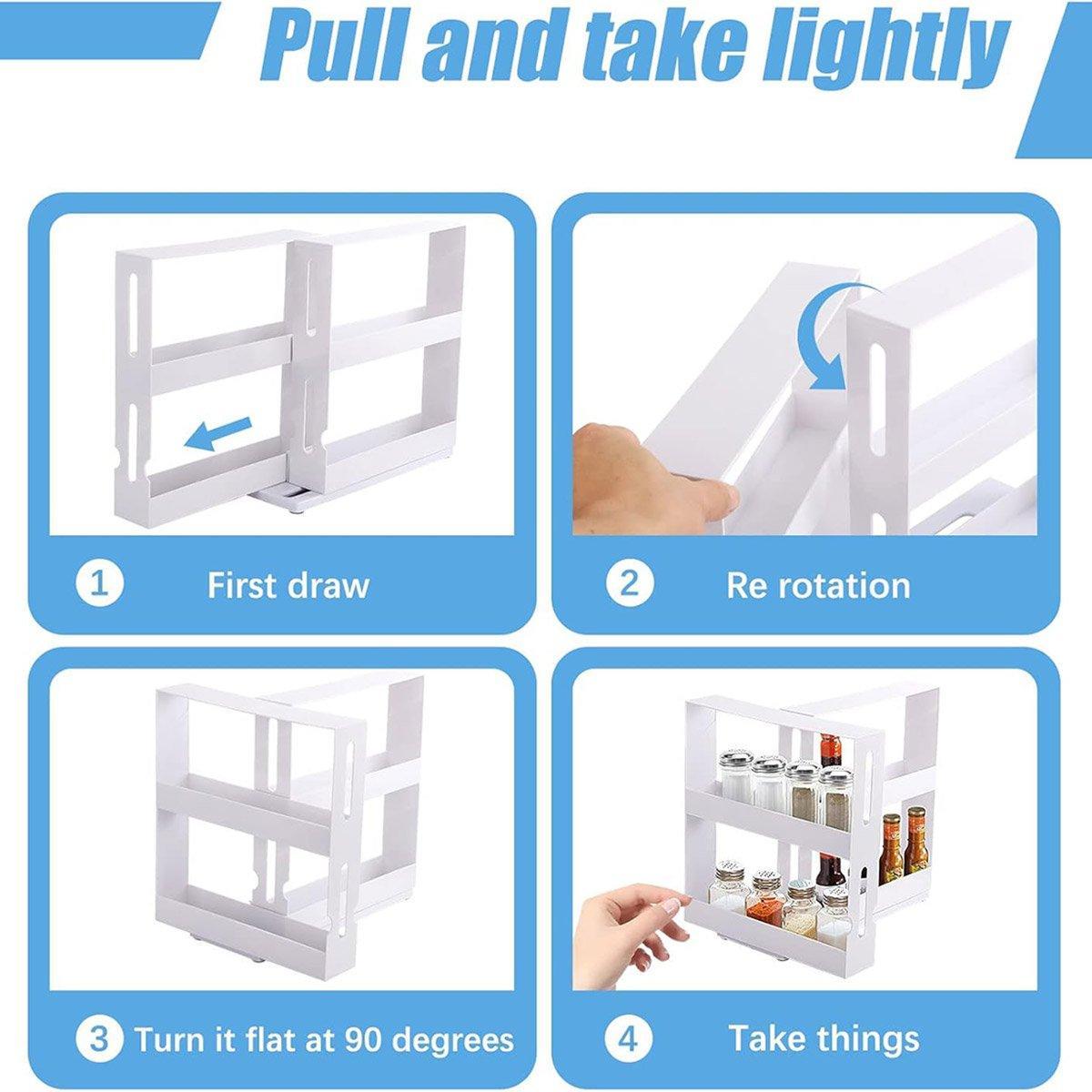 This practical Rotating Spice Rack maximizes kitchen storage space. With a unique 90-degree rotating feature, it provides quick access to spices and herbs while maintaining a neat arrangement.