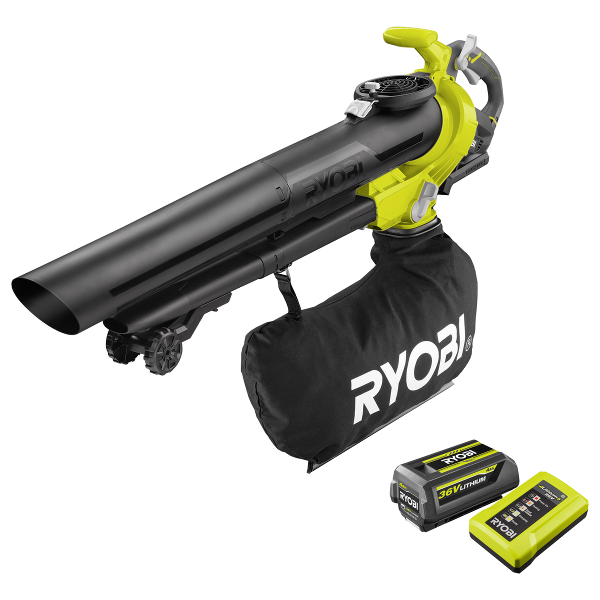 The Ryobi 36v Brushless Cordless Blower Vac 4 0ah Kit rbv3640 is designed for vacuuming dry leaves and grass clippings only.