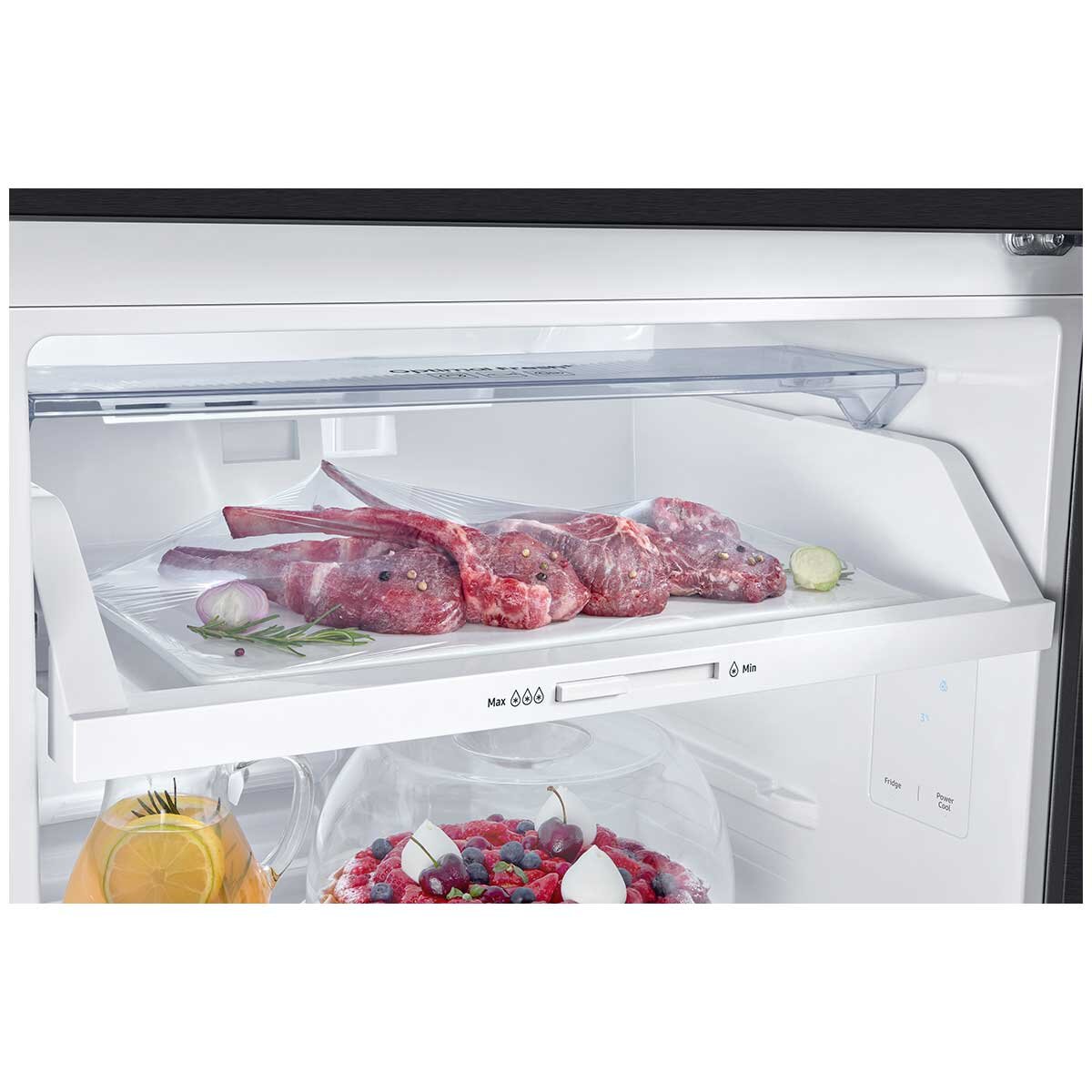 Maximize your food storage with the Samsung 348L Top Mount Refrigerator. Its spacious interior, thanks to SpaceMax technology, provides ample room for all your groceries. The innovative high-urethane insulation creates thinner walls, resulting in a larger capacity without sacrificing energy efficiency.