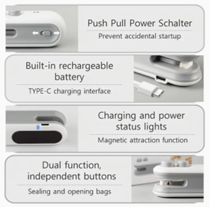 Our Tiny Sealer offers wide versatility for all your household needs. Fits any type of bag Efficiently seals and preserves foodGreat for snacks, pantry items, and more—your go-to sealing solution for everyday use.