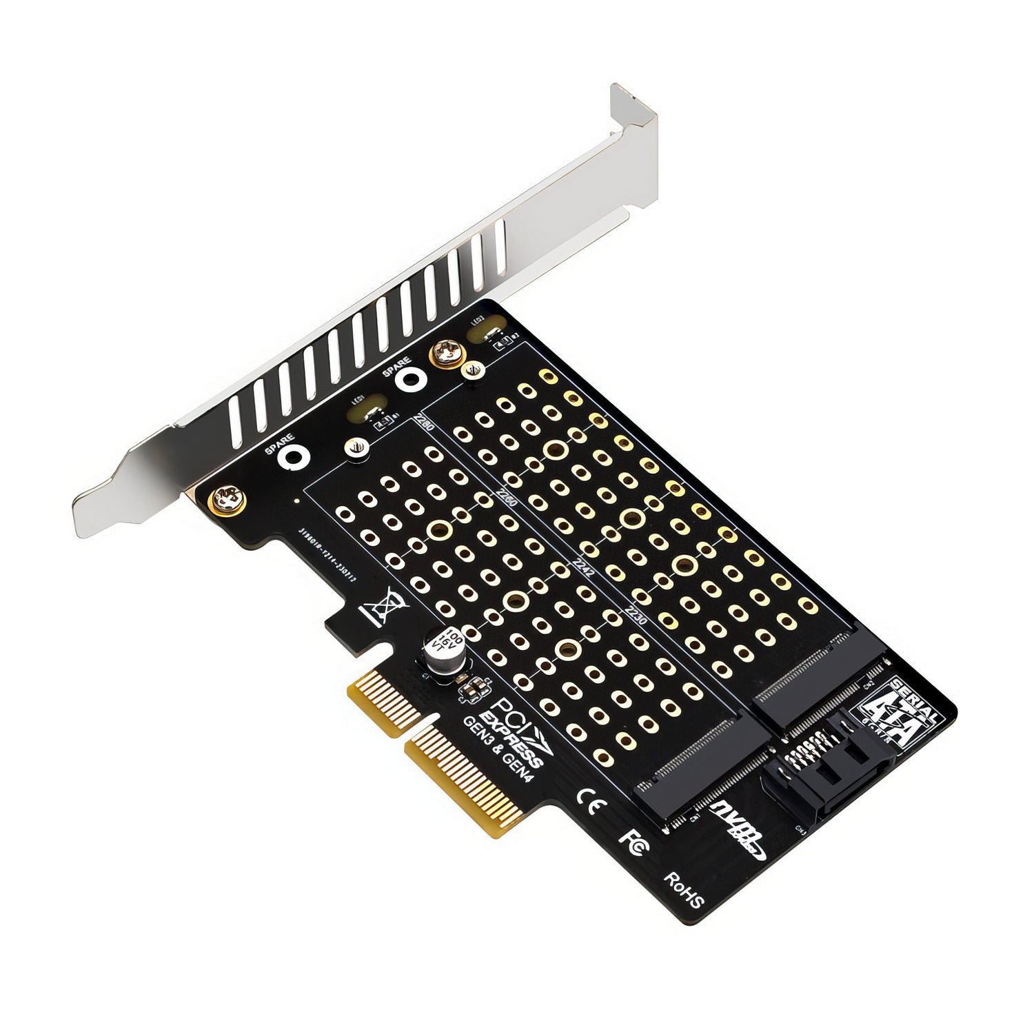 The expansion card offers the convenience of integrating both fast NVMe M.2 SSDs and traditional SATA M.2 SSDs simultaneously, making it an adaptable solution for upgrading and expanding storage on existing systems.