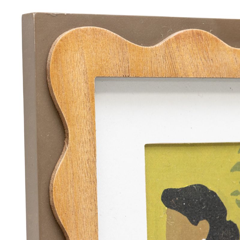 Infuse your home with style using this striking framed wall art piece featuring a lady in a striped dress.
