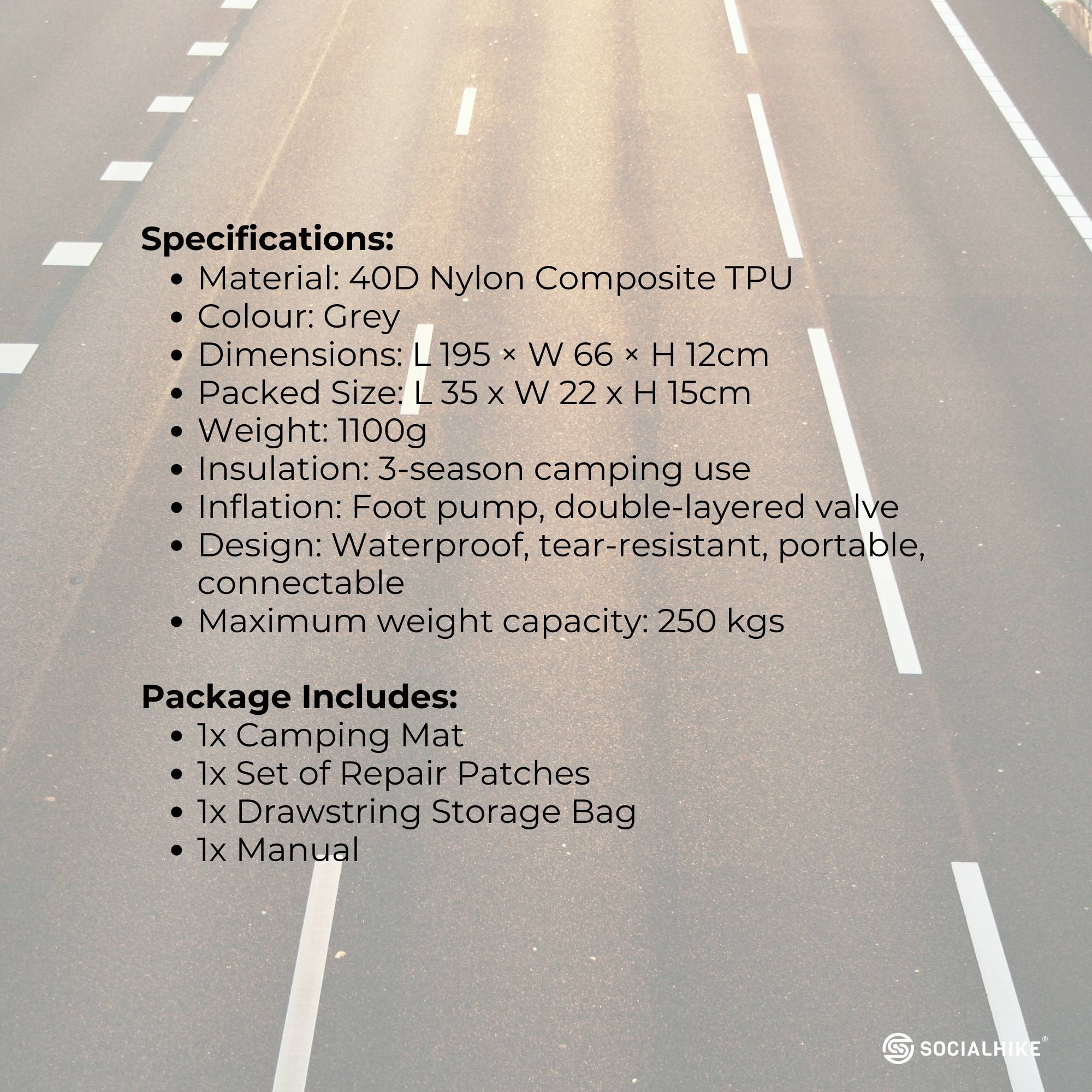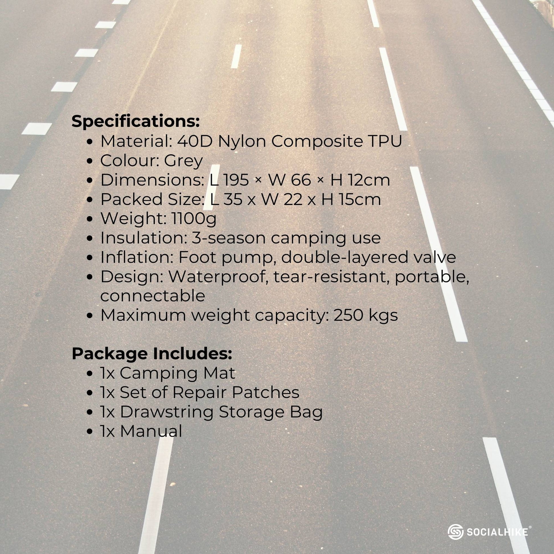 Enjoy a comfortable night's sleep outdoors with the Social Hike Step-Inflating Camping Mattress. This durable, waterproof sleeping pad inflates quickly with just a step, making it perfect for any outdoor adventure.