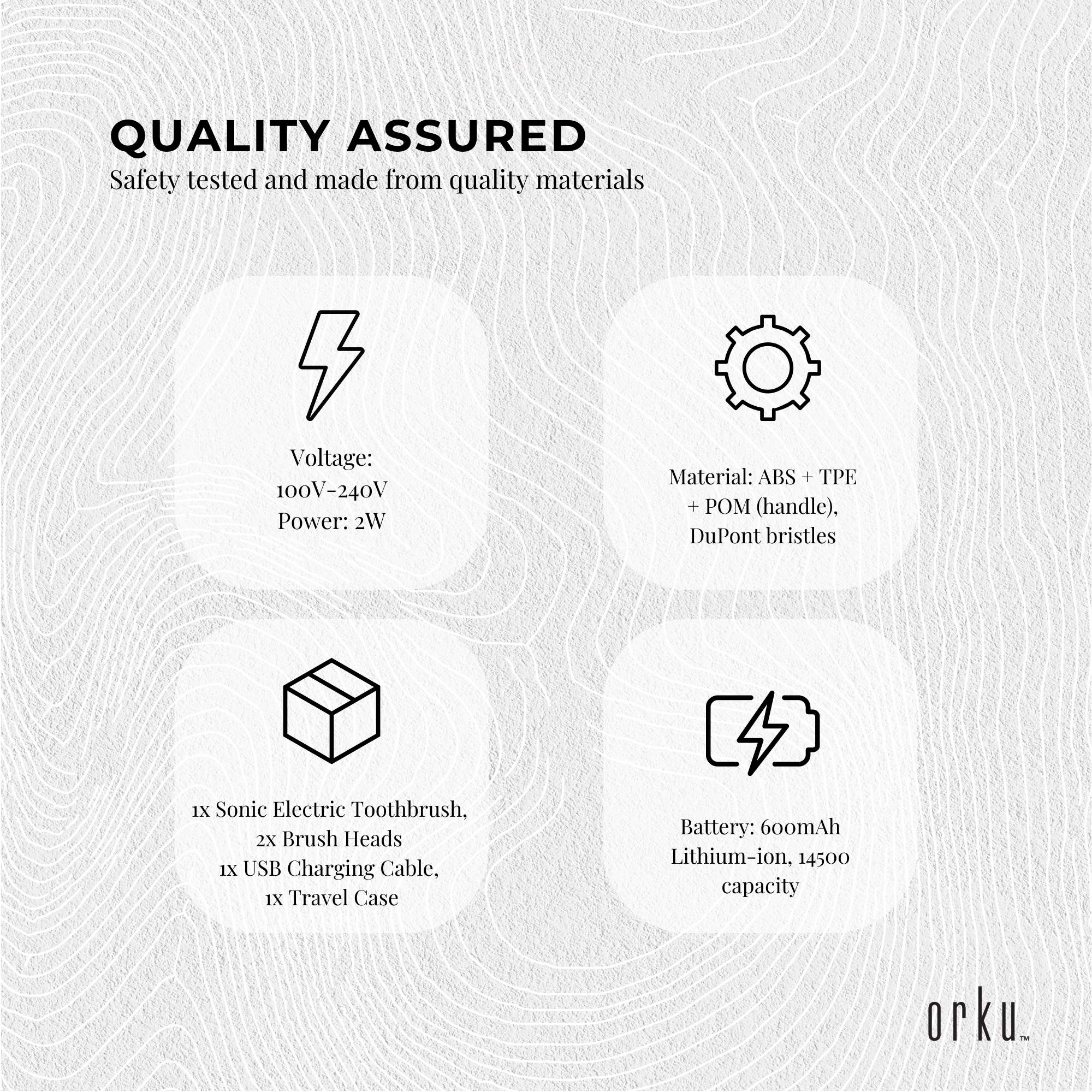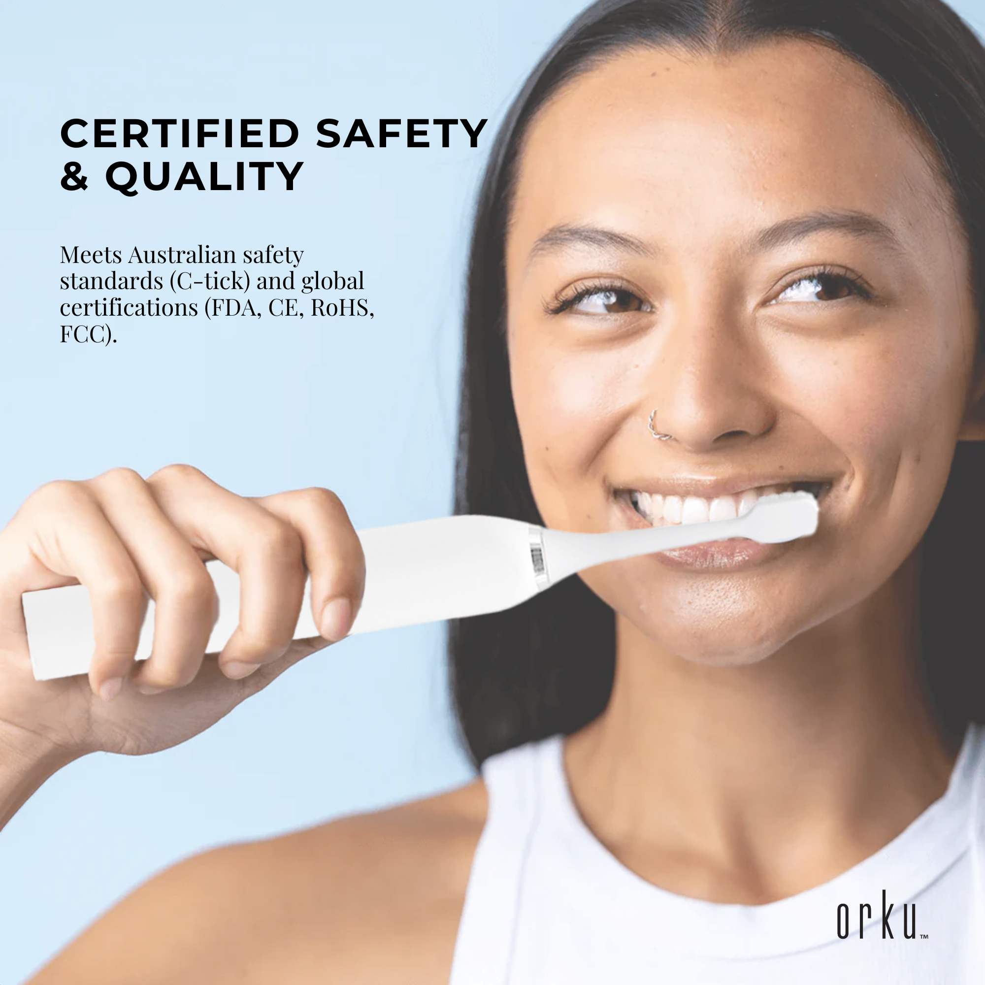 The Smart Sonic Electric Toothbrush, is a portable USB and wireless rechargeable teeth cleaning device, which comes with 2 brush head attachments in a handy hard covered travel case. Advanced magnetic levitation sonic cleaning technology produces up to 38,000 high frequency brush strokes per minute for an exceptional and dynamic everyday cleaning action. Charging within 4 hrs via USB and can last up to 60 days, this waterproof electric toothbrush offers 5 brushing modes for varying oral care needs and 100 % Du-Pont brush bristles. Features a 2 minute auto-timer as recommended by dentists, giving a signal at 30 second intervals to move to the next area of your mouth, ensuring an all over clean.A professional and quality electrical device, it has the C-tick for Australian standard safety, along with FDA, CE, RoHS, IPX7, FCC certificates.