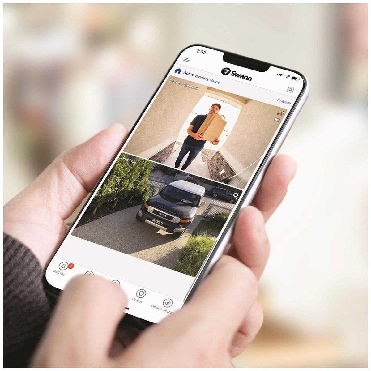 Swann Home Security System 12 Camera 16 Channel 1080p Full HD DVR – SWDVK-1646812SLW Protect your property with confidence using the Swann 12-Camera 16-Channel Full HD DVR Security System. Designed for large homes, offices, and commercial spaces, this robust surveillance solution offers wide-area coverage and clear 1080p Full HD video. With a powerful DVR system and multiple cameras, you can monitor every angle in real time or review recordings with ease. This system features True Detect™ motion and heat-sensing technology, ensuring accurate alerts and minimizing false triggers. With night vision up to 30 meters and weatherproof cameras, your security stays uncompromised day and night, rain or shine.