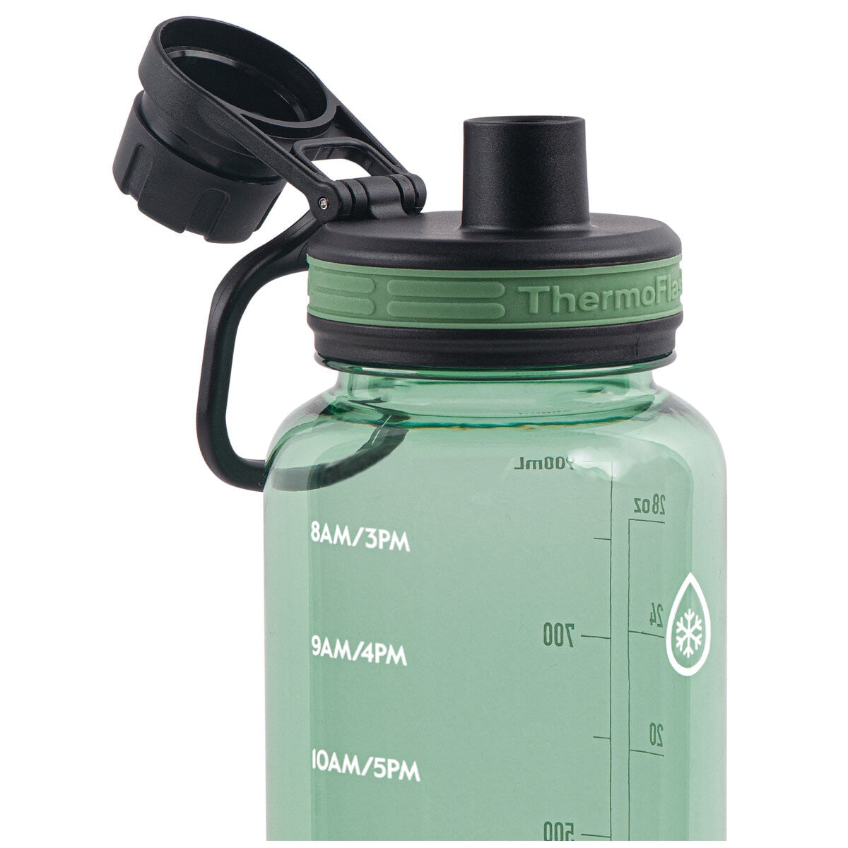 Stay hydrated and motivated all day long with this two-pack of Thermoflask Tritan Motivational Drink Bottles. Each 946-ml bottle features hourly time markers to encourage consistent hydration. Made from shatterproof, BPA-free Tritan plastic, these bottles are built to last.