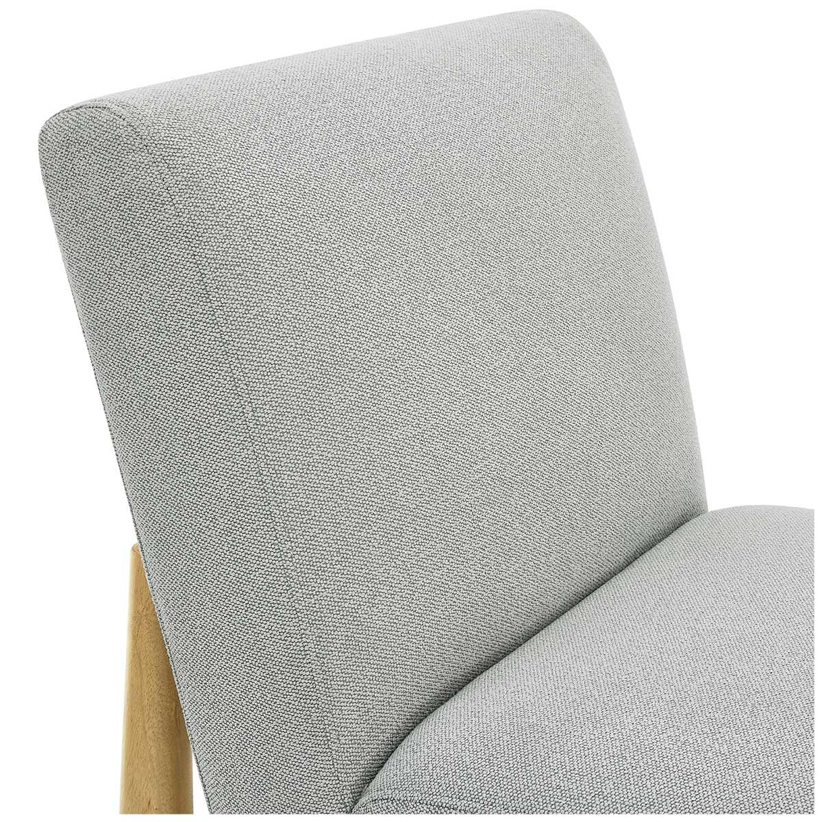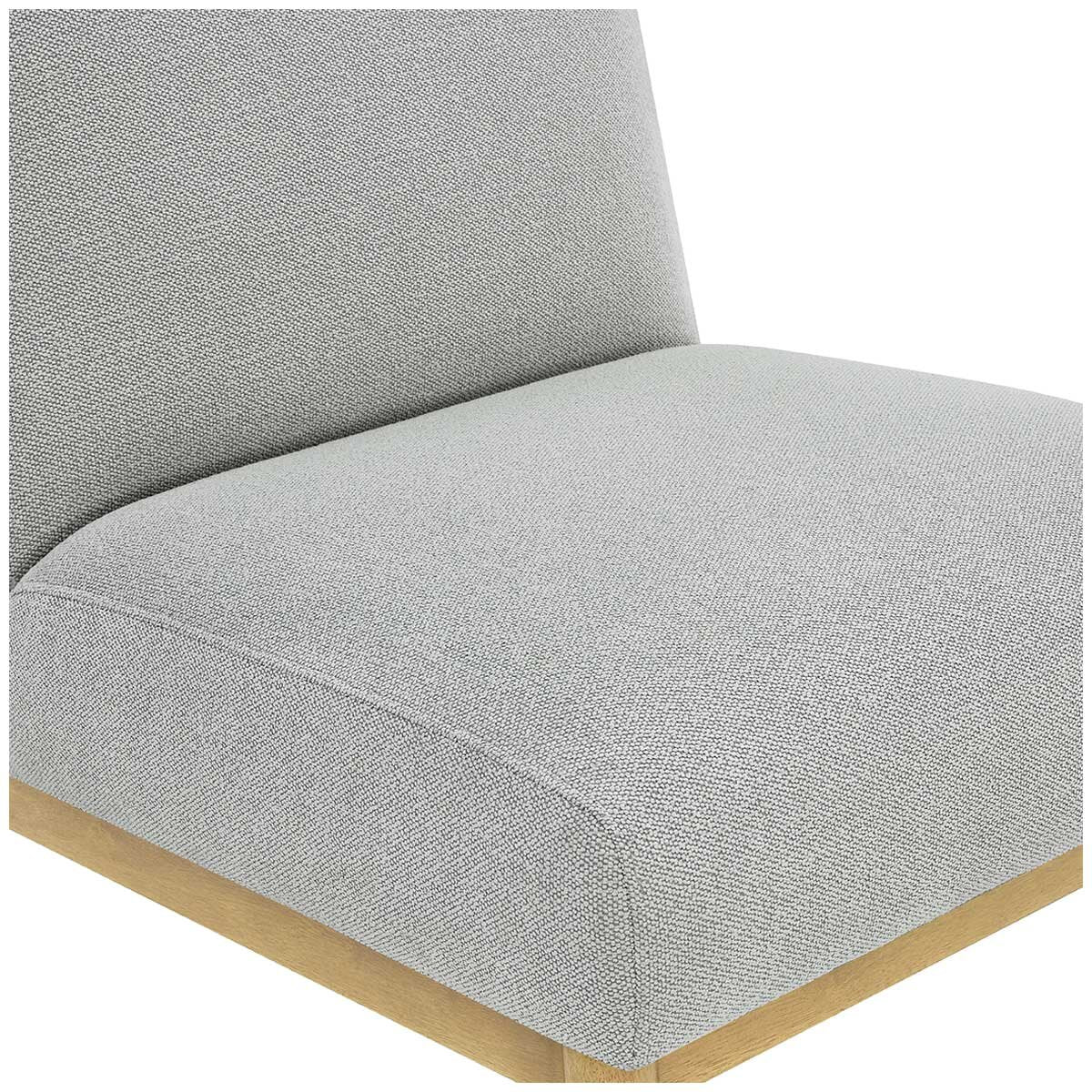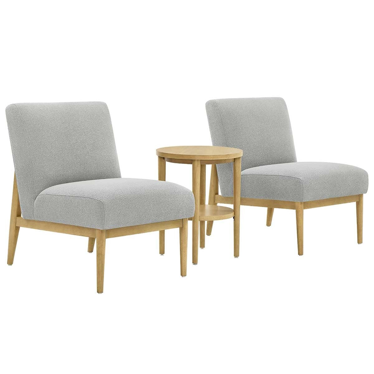Sink into the soft, durable 100% polyester upholstery of the two armless chairs. Their smooth back design and high tapered legs offer a contemporary twist on classic elegance. The accompanying natural wood side table complements the chairs with its clean lines, completing the sophisticated look.