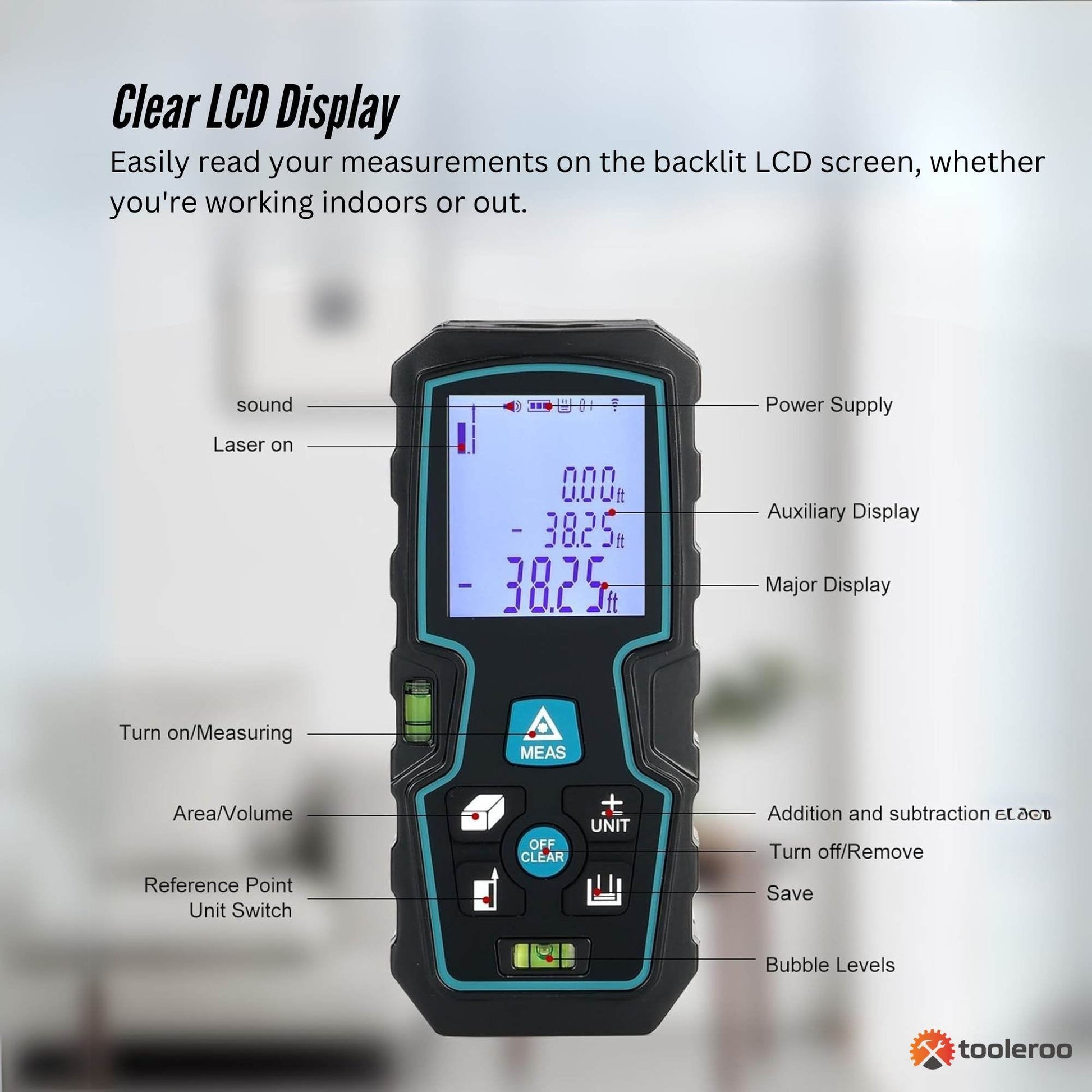 Tooleroo 70m Digital Laser Distance Measurer - LCD Area Volume Meter Tool