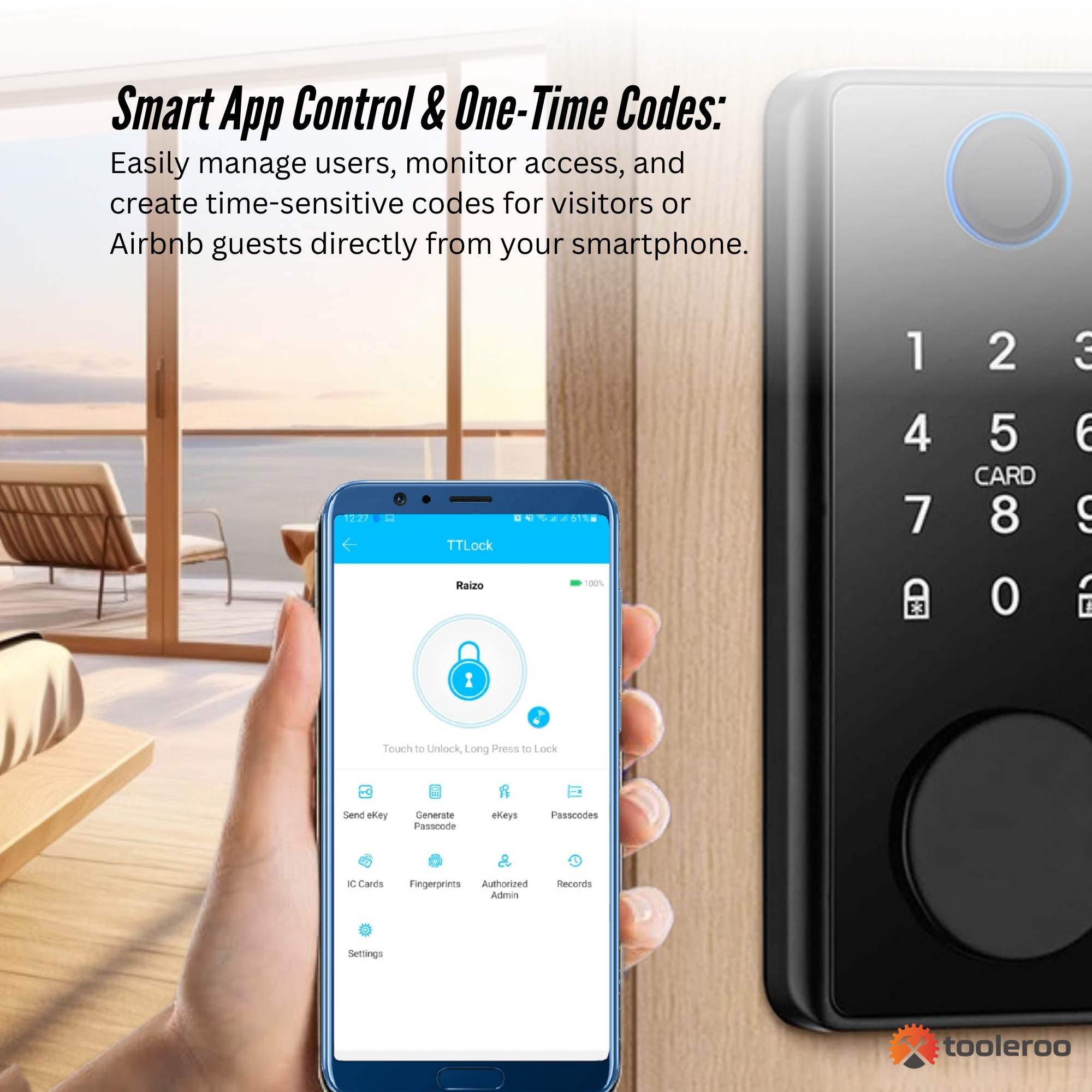 Upgrade your home security with this Digital Smart Door Lock, a modern 5-in-1 access system that supports fingerprint recognition, IC card, keypad PINs, mobile app control, and backup physical keys. Engineered for convenience and security, the biometric fingerprint sensor offers 99% accuracy with lightning-fast unlock speeds.
