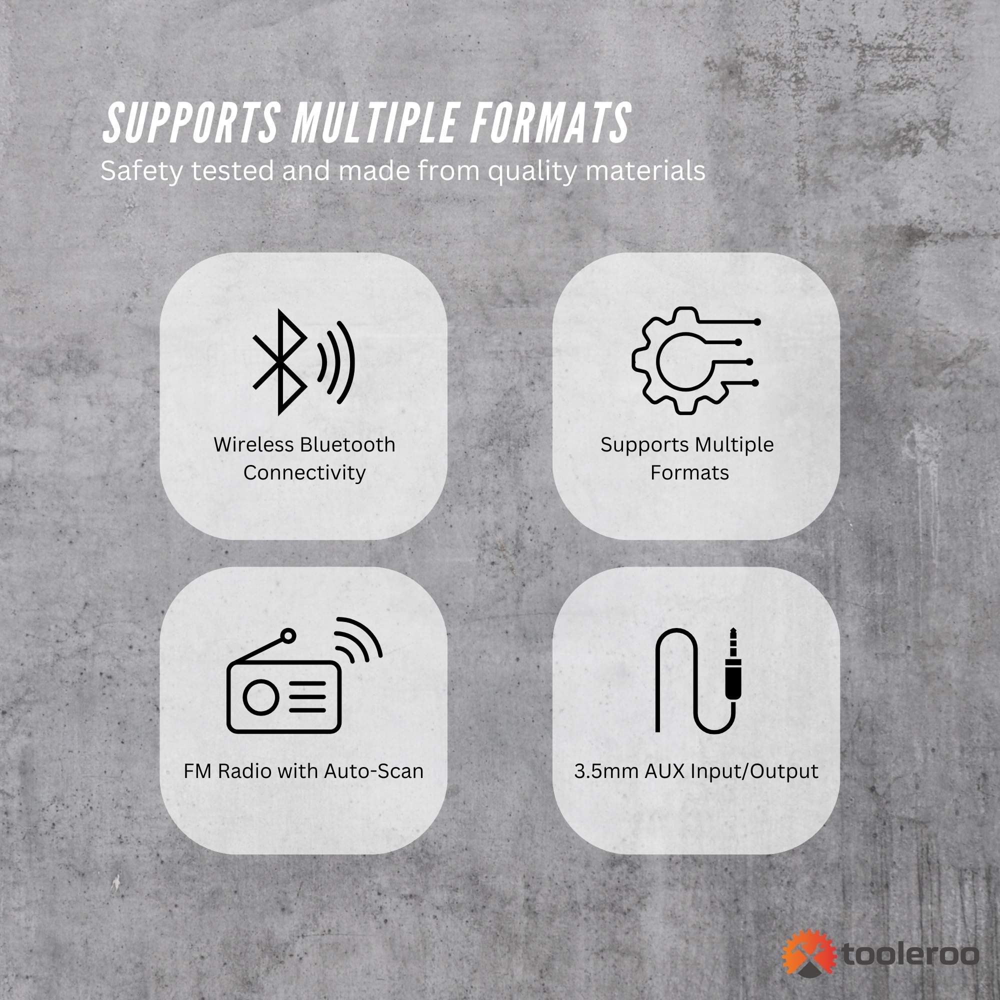 The Tooleroo Portable CD Player is a multi-functional desktop audio system with Bluetooth, USB, AUX, and FM radio for seamless music playback. Featuring HiFi stereo sound and built-in speakers, this compact CD player delivers crystal-clear audio from CD, MP3, and wireless streaming. The LED display and easy-touch controls and fully functioning remote control to make operation effortless, while the USB Type-C power supply ensures energy-efficient performance. Ideal for home, office, or bedroom use, it also includes a timer function for added convenience.