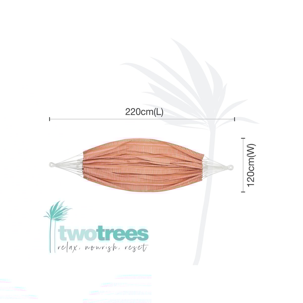 Two Trees Single Cotton Hammock 120cm x 220cm offers a soft, durable fabric with a 140kg weight capacity, perfect for relaxing outdoors.