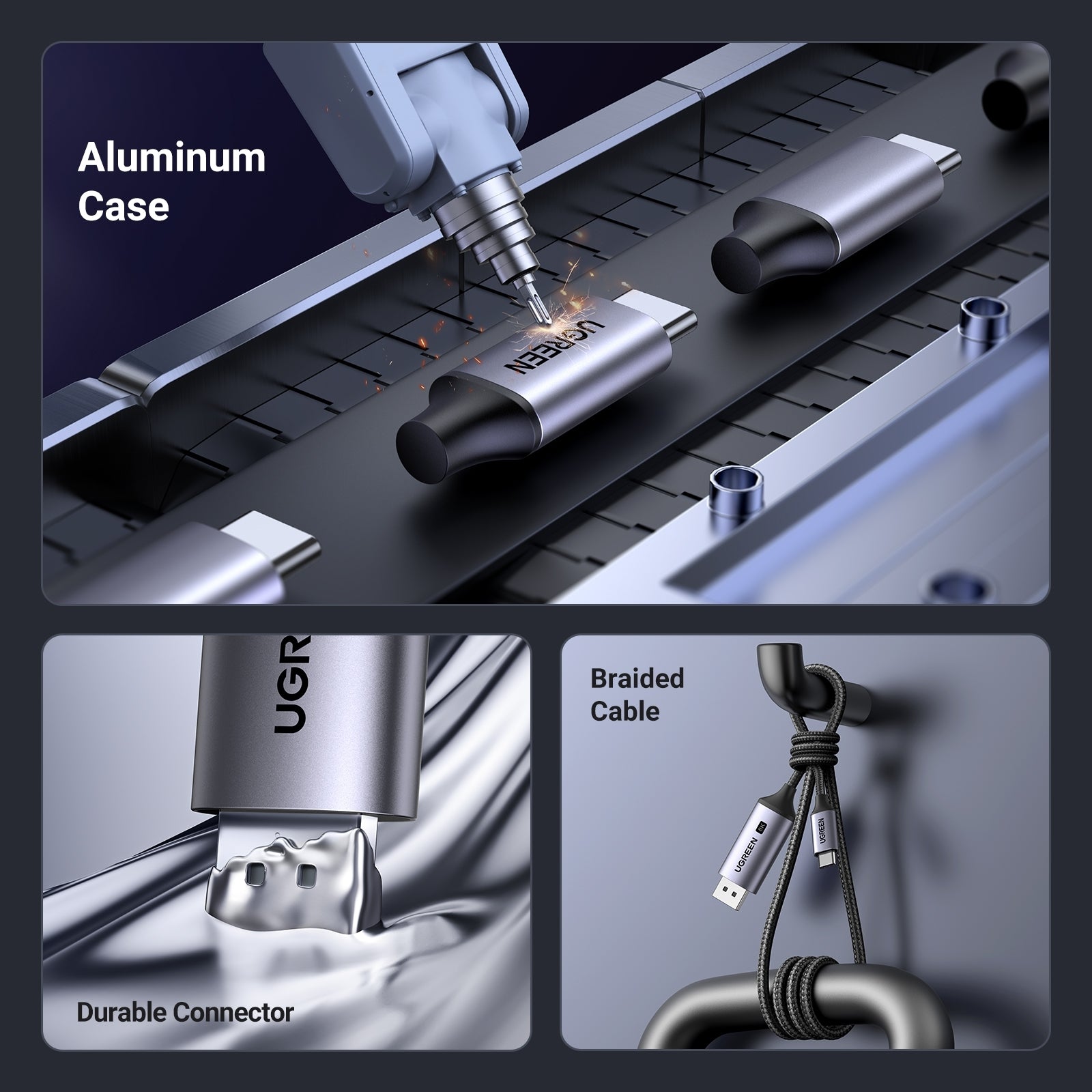 The UGREEN USB C to Displayport 1.4 cable connects a phone or computer with a Type-C or Thunderbolt 4/3 port to a monitor with DisplayPort and there is no need for a driver or software. This Display Port to USB C cable supports up to 8K@60Hz resolution (backward supports 4K@240Hz, 2K@240Hz), offering you a realistic 3D experience. With Dynamic HDR, you could enjoy more realistic photographs and videos with brighter colors and higher contrast.