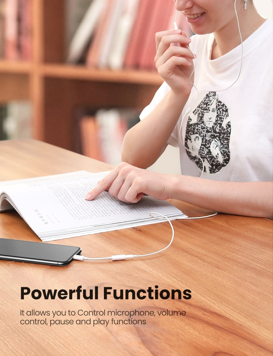 Apple MFi CertifiedUGREEN 3.5mm iPhone 8-pin adapters are certified by Apple to meet rigid iPhone requirements and ensure completely and securely connect with your Apple devices.Extensive compatibilityThis iPhone 8-pin to 3.5mm Headphone Converter allows you to use your existing 3.5mm headphones with the iPhone 13/13 Mini/13 Pro/13 Pro Max/12/12 Mini/12 Pro/12 Pro Max/11/11 Pro/11 Pro Max/XS/XS Max/XR/X/8 7 6 Plus, iPod touches 6th Generation, iPad 9/iPad Mini/iPad Air/ iPad Pro. (Note: It is not compatible with iPad mini 6, 2021/2020/2018 iPad Pro 11" / 12.9" which has a USB C interface).High performanceThe iPhone 8-pin adapter equipped with advanced noise reduction technology, supports up to 48 kHz, 26-bit audio output, can provide you with the perfect sound. It not only support listening to music but also the wire control function such as a microphone, volume control, pause and play functions, plug and play with no setting changes.Durable designNo damages, scratches, bendings or tearings! UGREEN Apple aux adapter made of Hi-Q aluminum alloy case and nylon-braided cable material, built-in enameled copper and PVC jacket to ensure the stable sound transmission.Easy to carry aroundStylish design, lightweight and unique with portable size