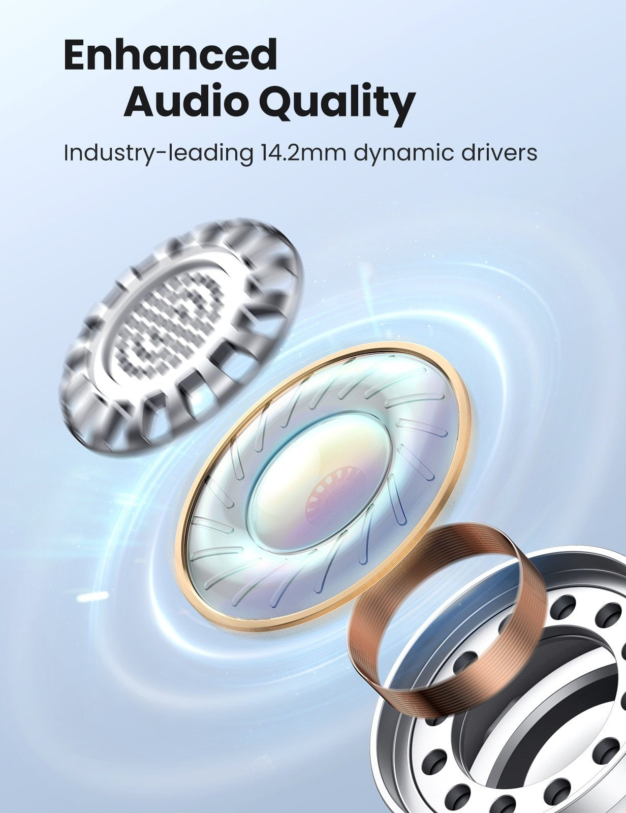 Features:4 Superior MEMS MicrophonesEach earbud comes with 2 advanced microphones, one effectively reduces the background noise and the other one picks up and enhances your voice, ensuring crystal-clear phone calls even in a noisy background.Twin/Mono ModeEach earbud can be used independently, seamlessly switching between Twin Mode or Mono Mode. Just paired with the Bluetooth "UGREEN HiTune T2", then you can use each earbud freely as you like.Ultra-Long Battery LifeUGREEN Hitune T2 supports 4hrs ultra-long playtime from a single charge and extended to 20 hrs with the charging case. 15mins charging for the earbuds will allow 1 hour of listening.Fast Wireless ChargingEnjoy fast charging, to fully charge the rechargeable case only 1.5 hours via fast charge USB-C cable or less than 2 hours via a wireless charger. (Note: Wireless charger sold separately)Comfortable WearingThe ergonomic design greatly disperses pressure and ensures comfortable wearing. And each earbud only weighs 0.19oz, which is super lightweight and you can barely notice them.IPX5 WaterproofSupport IPX5 waterproof to prevent sweat and water splash, no need to worry when you wear it while running, skiing, cycling, etc.