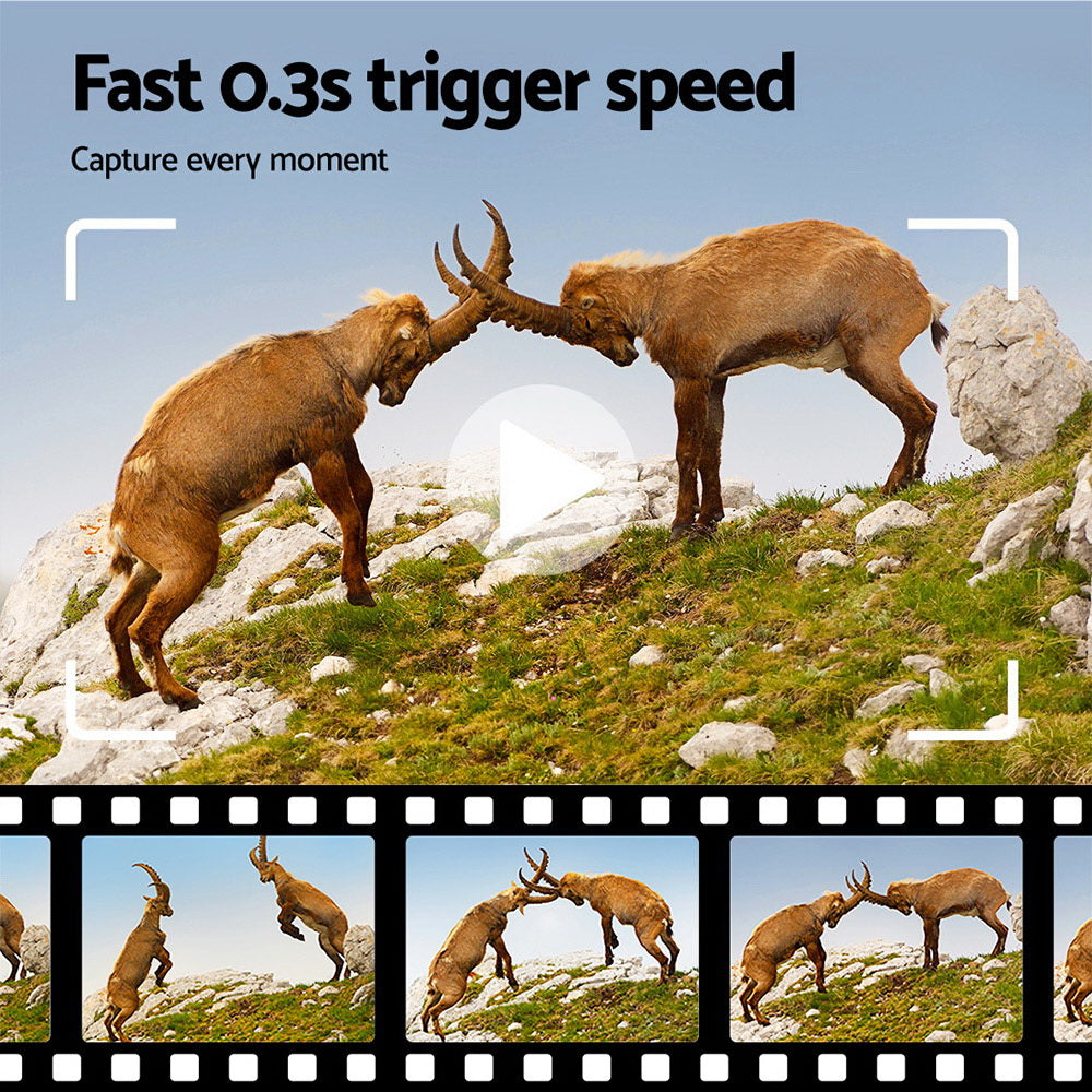 FeaturesSolar-powered, with built in lithium battery or option to use 4 x AA batteries (not included)Rated IP65 waterproofHigh-resolution imaging, up to 50MP photo and 4K Full HD videoMultiple recording functions, like time-lapse and PIR motion detectionWide-angle lens with infrared night visionLong standby time with fast trigger speed for reliable motion capture13 Language settingsIntegrated LCD screenSimple installationNote: Wi-Fi connectivity is not available with this model