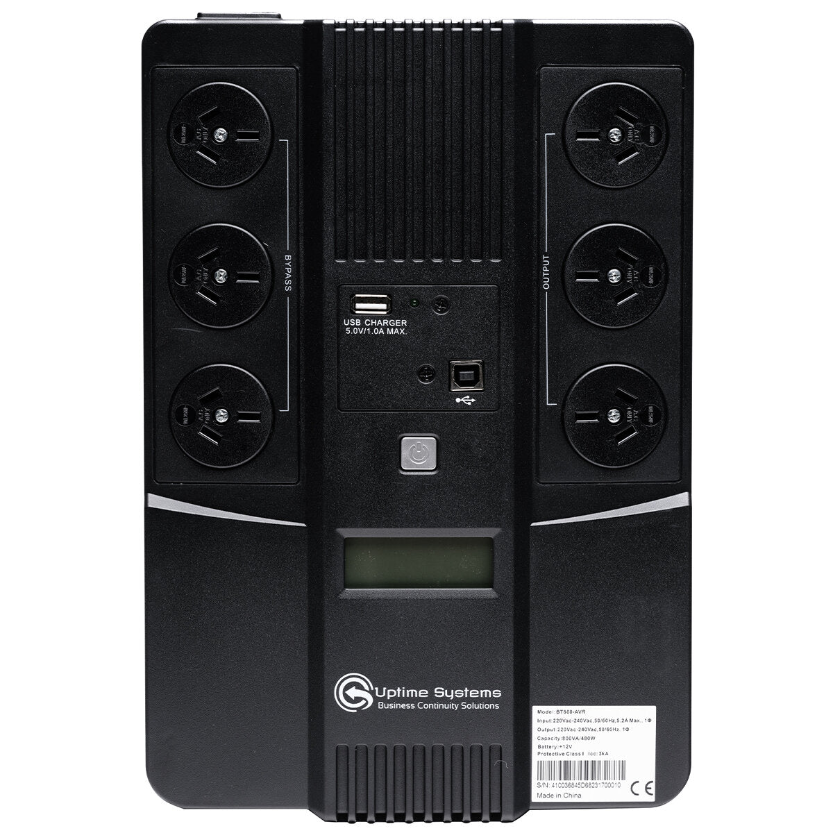 Protect your valuable electronics with the Uptime Systems BT Series BT800-AVR, an 800VA Line Interactive UPS featuring an LCD display. This powerboard-style UPS provides reliable backup power and surge protection for your home or office.