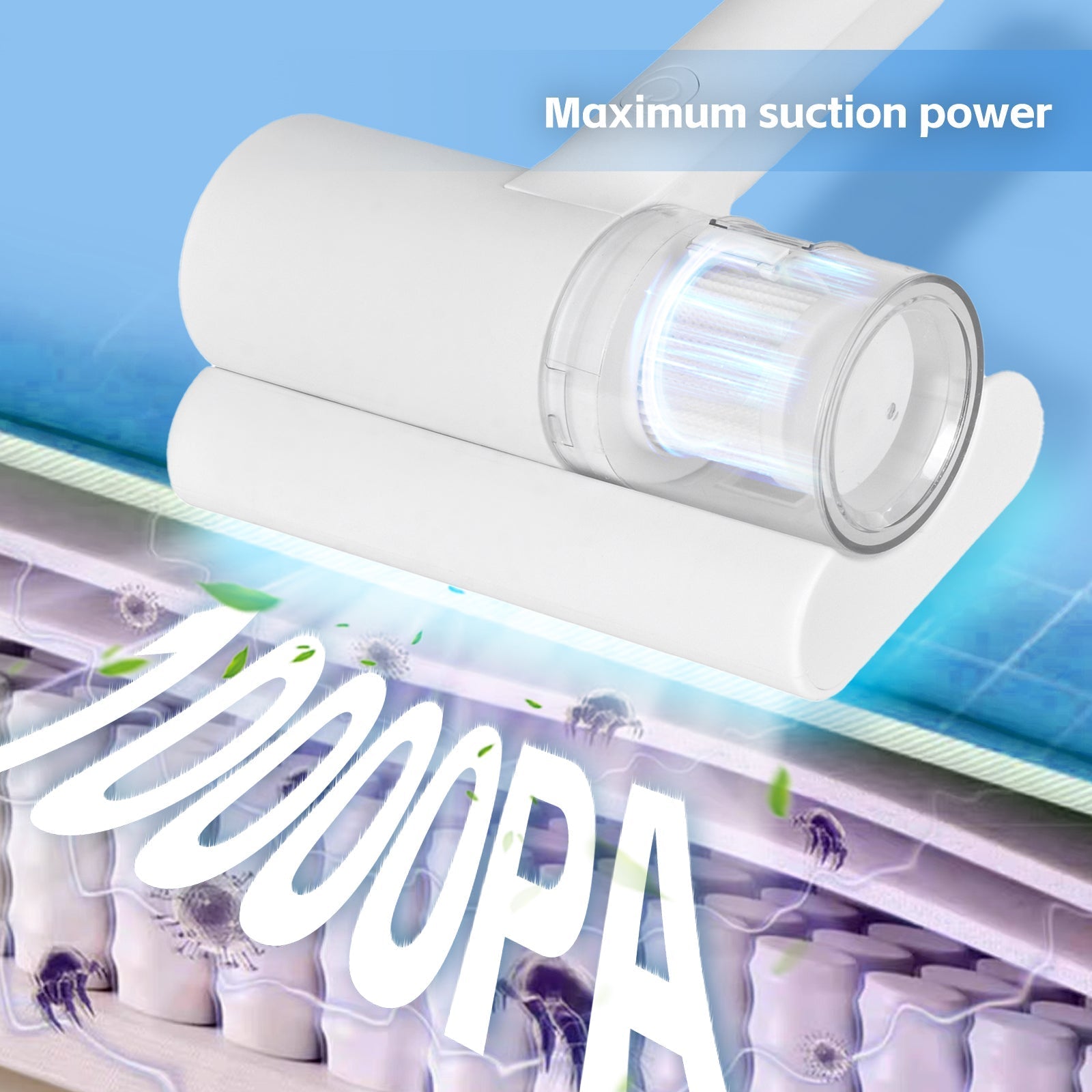 The UV-C Cordless Dust Mite Vacuum offers powerful sanitation by eliminating dust mites, bacteria, and odors using UV light and strong suction. Lightweight and handheld for easy use.